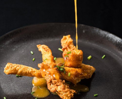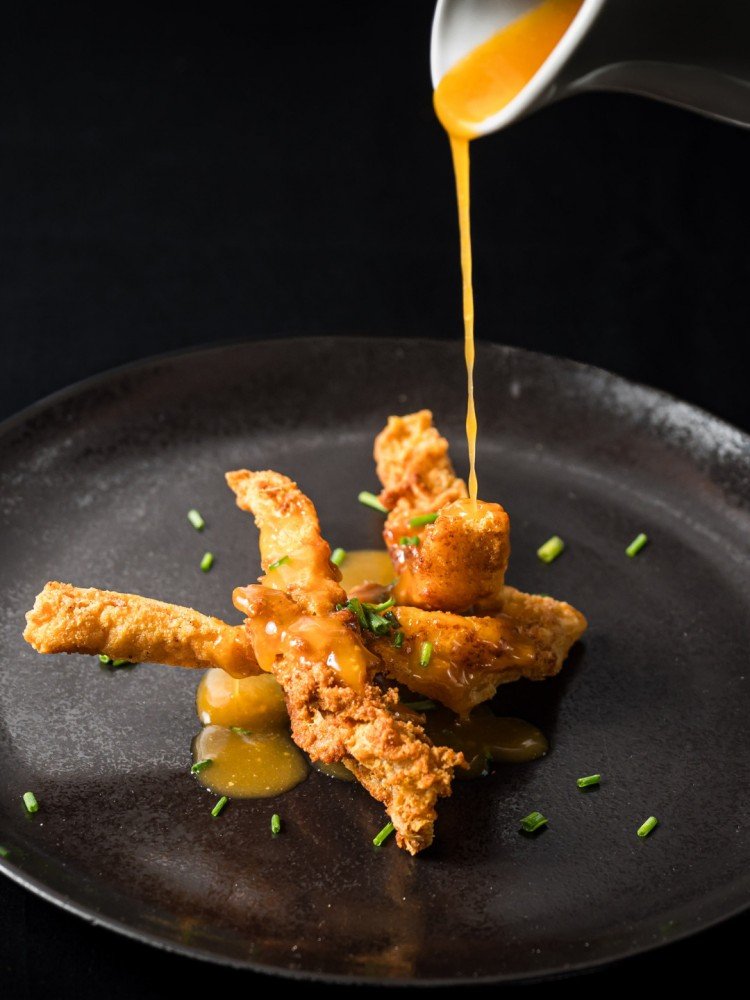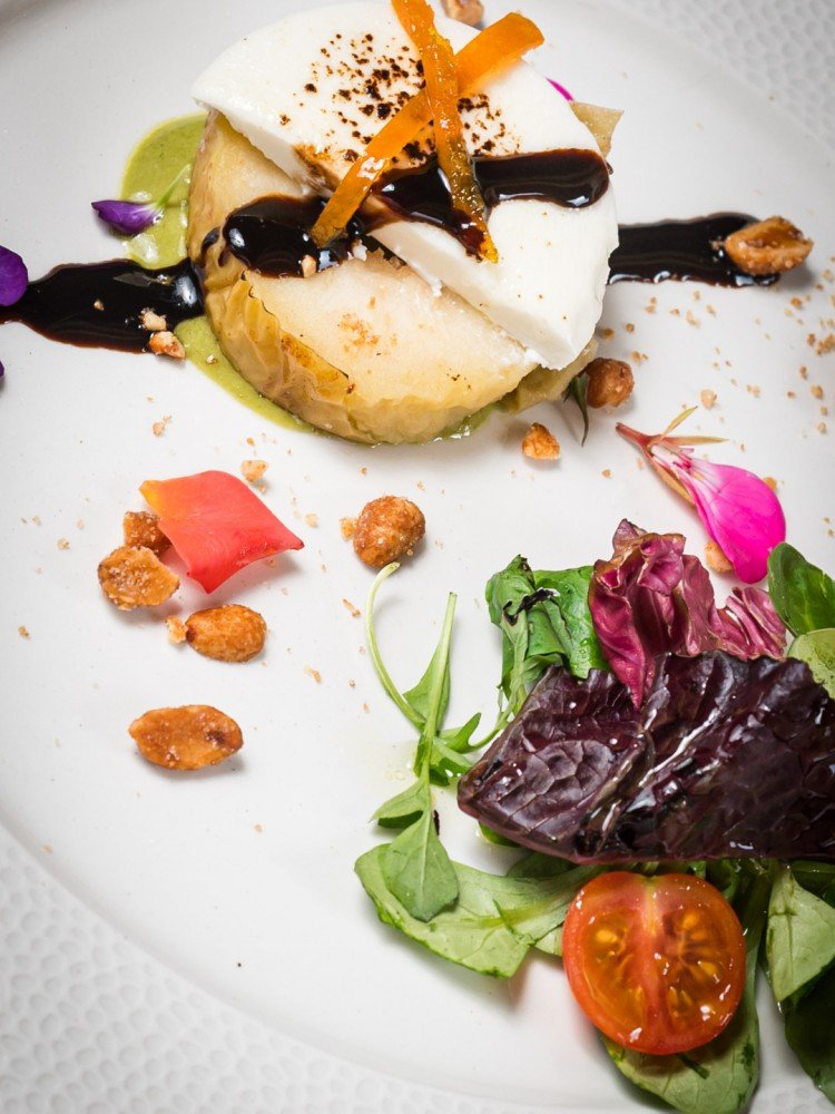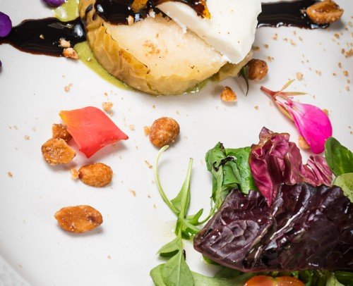 La Ensalada: Queso de cabra, manzana, pesto y frutos secos.